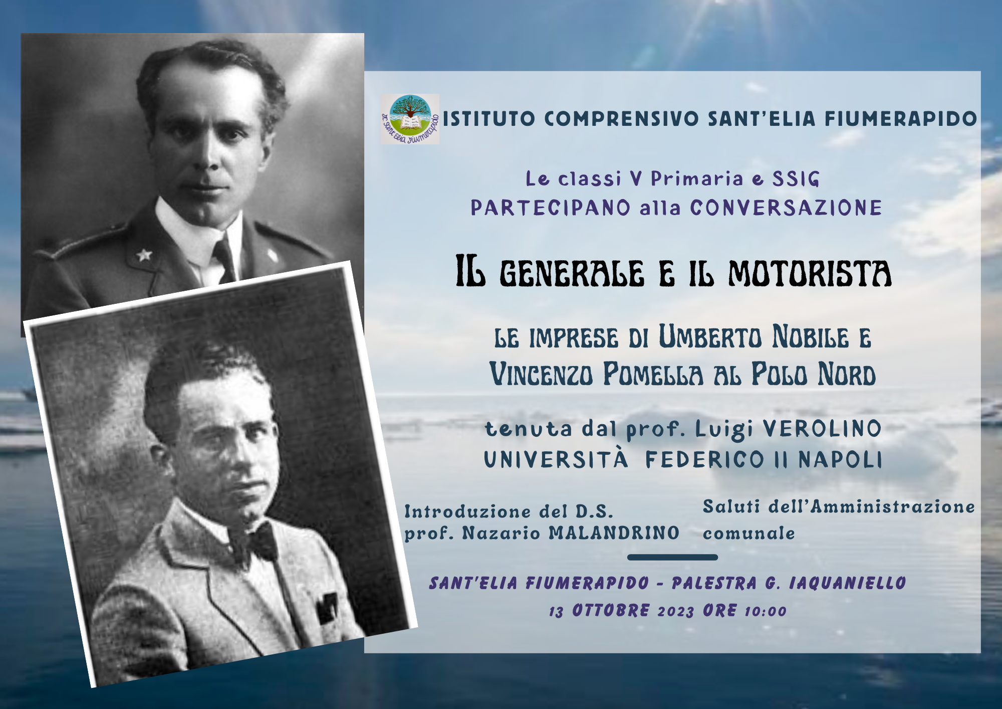 Il prof. Luigi Verolino venerdì 13 ottobre 2023 terrà una conversazione su "Le imprese di Umberto Nobile e Vincenzo Pomella al Polo Nord.
